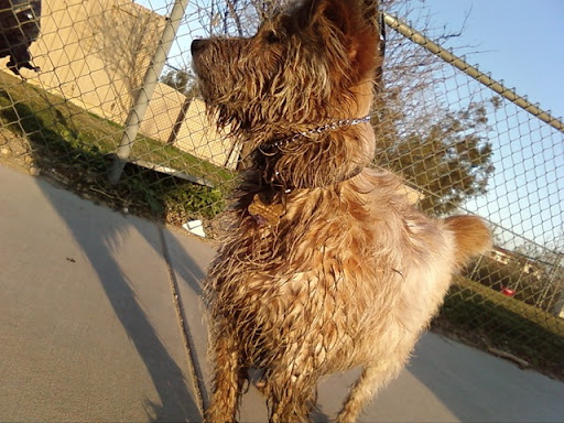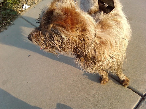 Yes, Scout once again found herself lying in the puddle and mud at the dog park. I was pretty far away from her, so she really got into it before I called her out. Pretty much everyone at the dog park was laughing and I couldn't be too mortified because it was pretty dang funny.